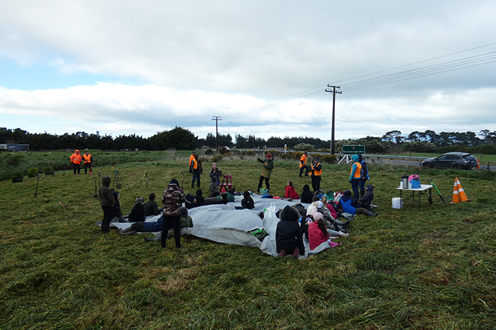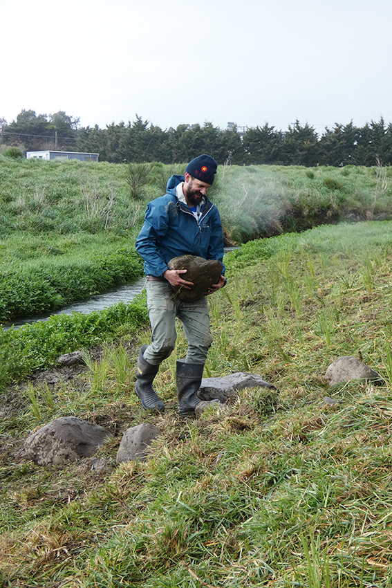 So not a great day for a swim for me, but I imagine 12.2 degrees C may be pretty ideal for a eel or a kokopu. I will need to find out! This reading is taken in the middle of Winter – and this makes me wonder what temperatures this stream will have during Summer, with so little shade, and how that may impact on oxygen levels for fish and macro-invertebrates. The planting that the students have done is a great step in the right direction to provide more shade, shelter and cooler temperatures especially in Summer!